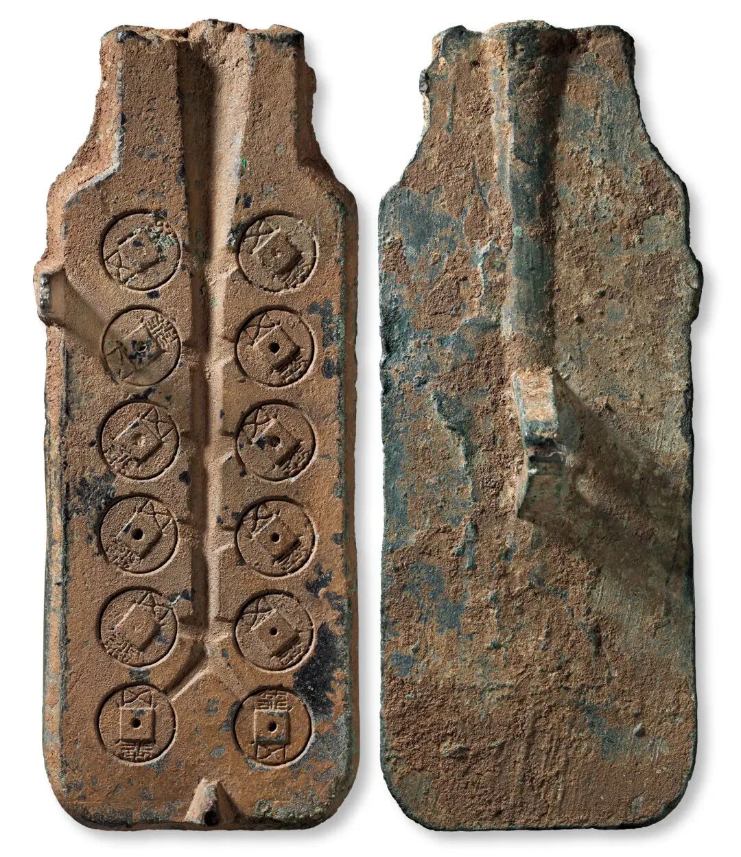铜范钱和普通钱有什么区别,哪个价格高?另一件西汉郡国“五珠”铜范 成交价28万元, 长25.9cm 宽10.2cm ;铜范是古代铸造金属货币的铜质模具,采用范铸技术,相较于泥范更为先进,可反复使用以提高铸钱效率。显而易见铜范的数量相较对应浇铸的钱币数量非常之少,它的作用相对于机制币的样币,价值也与机制样币一样稀缺珍贵,铜范分为公母两范,分别对应钱币正背面,上有反刻阴文篆书,此次成交的“五珠”铜范为公母两范,为完整器,非常罕见。