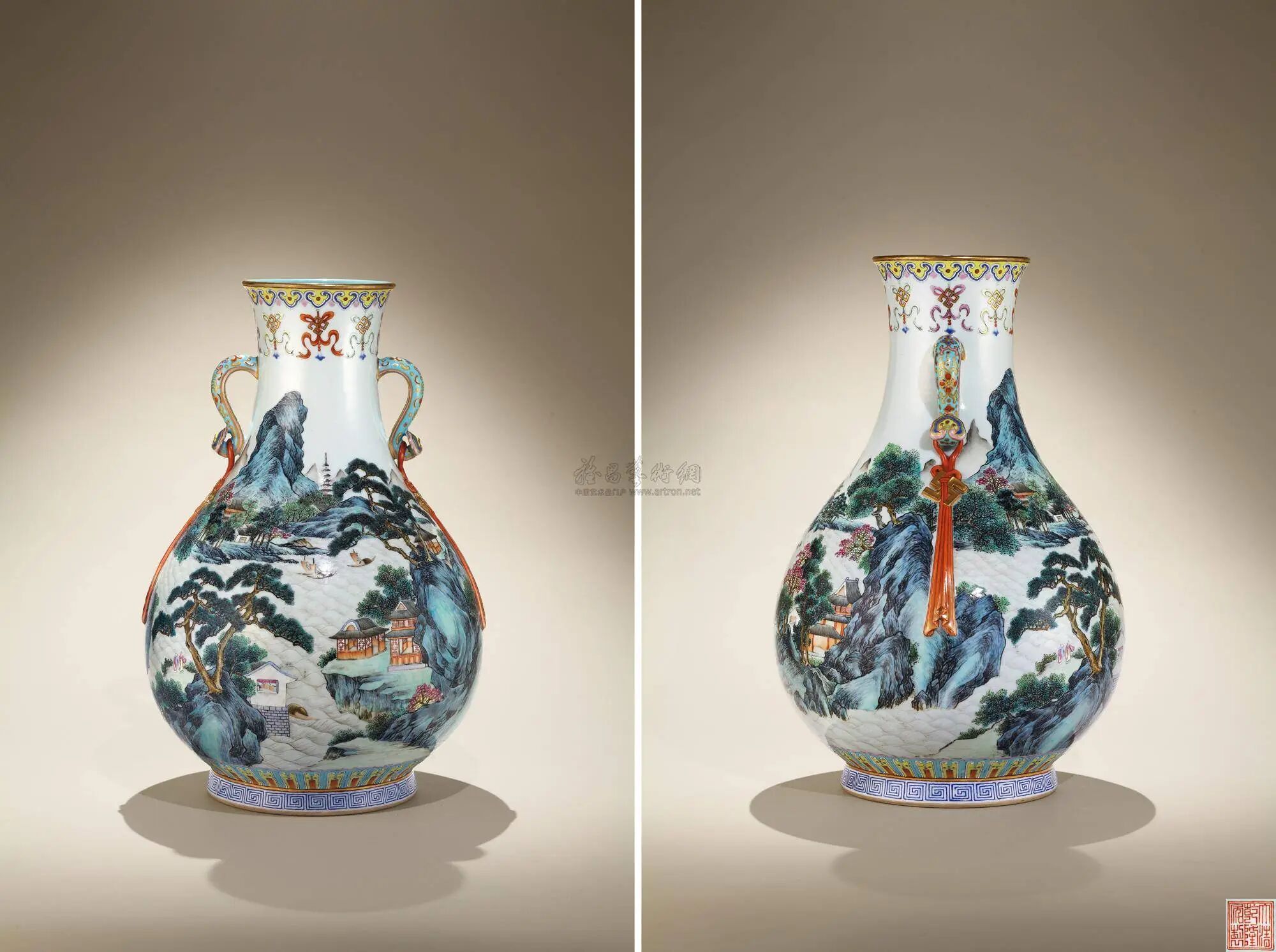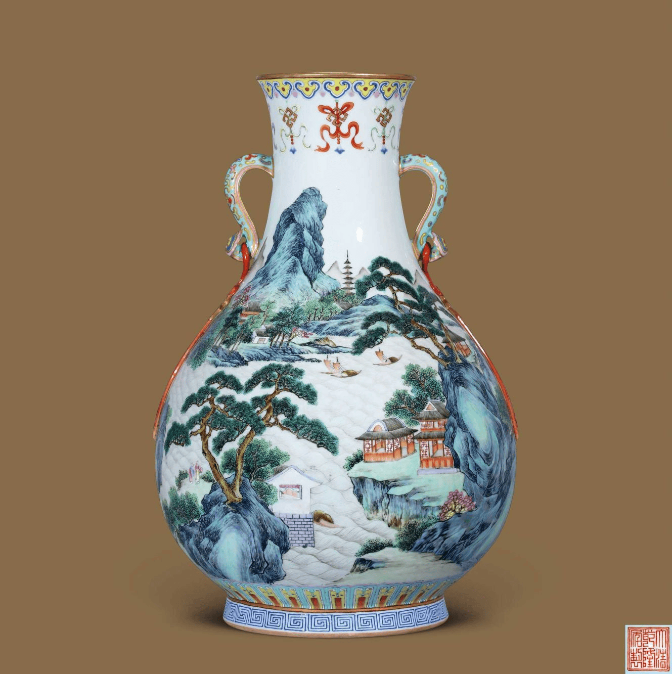 清乾隆 粉彩山水楼阁如意万代耳琵琶尊 成交价5462.5万元 2011年保利秋拍