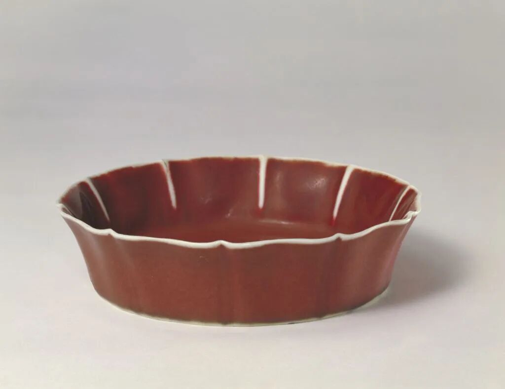 鲜红釉葵花式洗 宣德