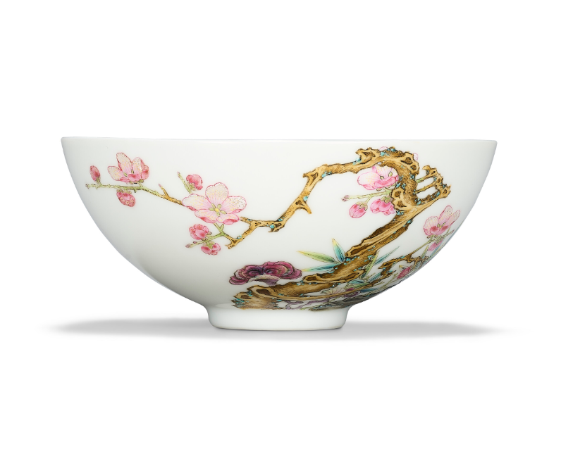 雍正粉彩梅竹灵芝纹茶碗   成交价2941.5万元港币